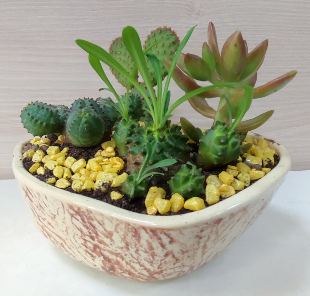 Эта композиция прекрасно впишется в интерьер,на праздничный стол.Подарок будет радовать долгое время в кашпо расположены суккуленты и кактус. Изделия по предзаказу/на заказ могут быть изготовлены в день обращения.Правила ухода-Содержание в светлой комнате с рассеянным солнечным светом.Полив 2 раза в месяц