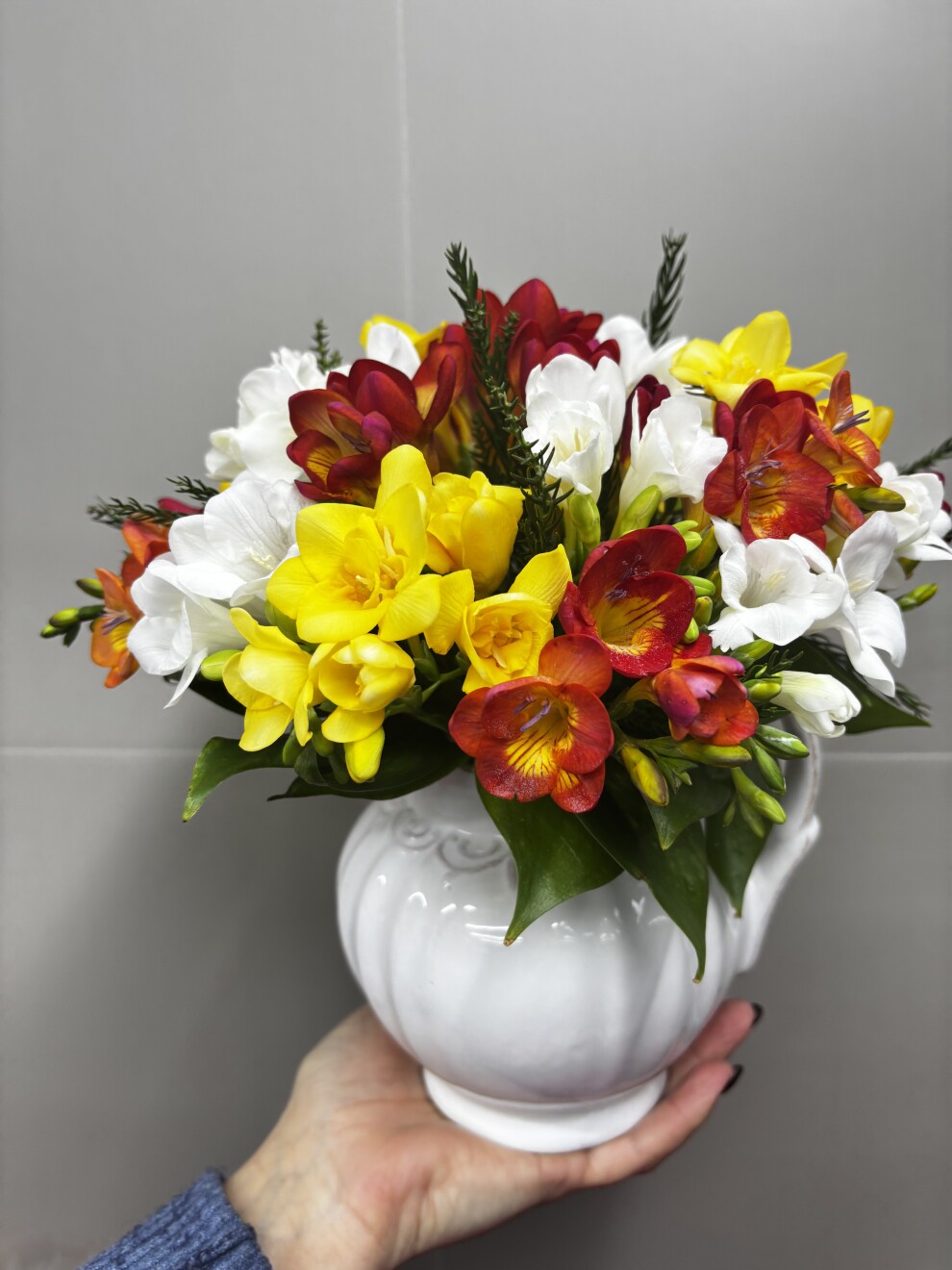 Фрезия в керамическом кашпо